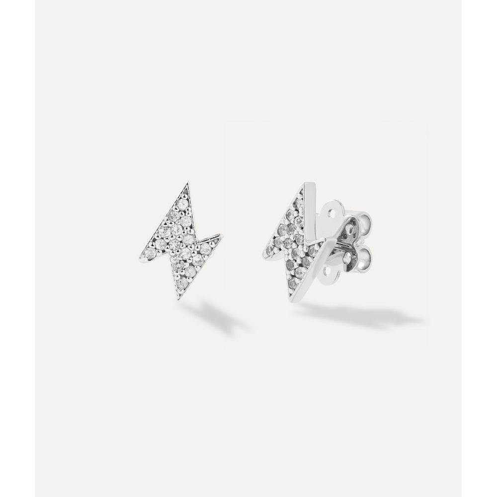 Par de brinco stud em formato de raio em ouro branco 18kt com topázios incolores em lapidação brilhante