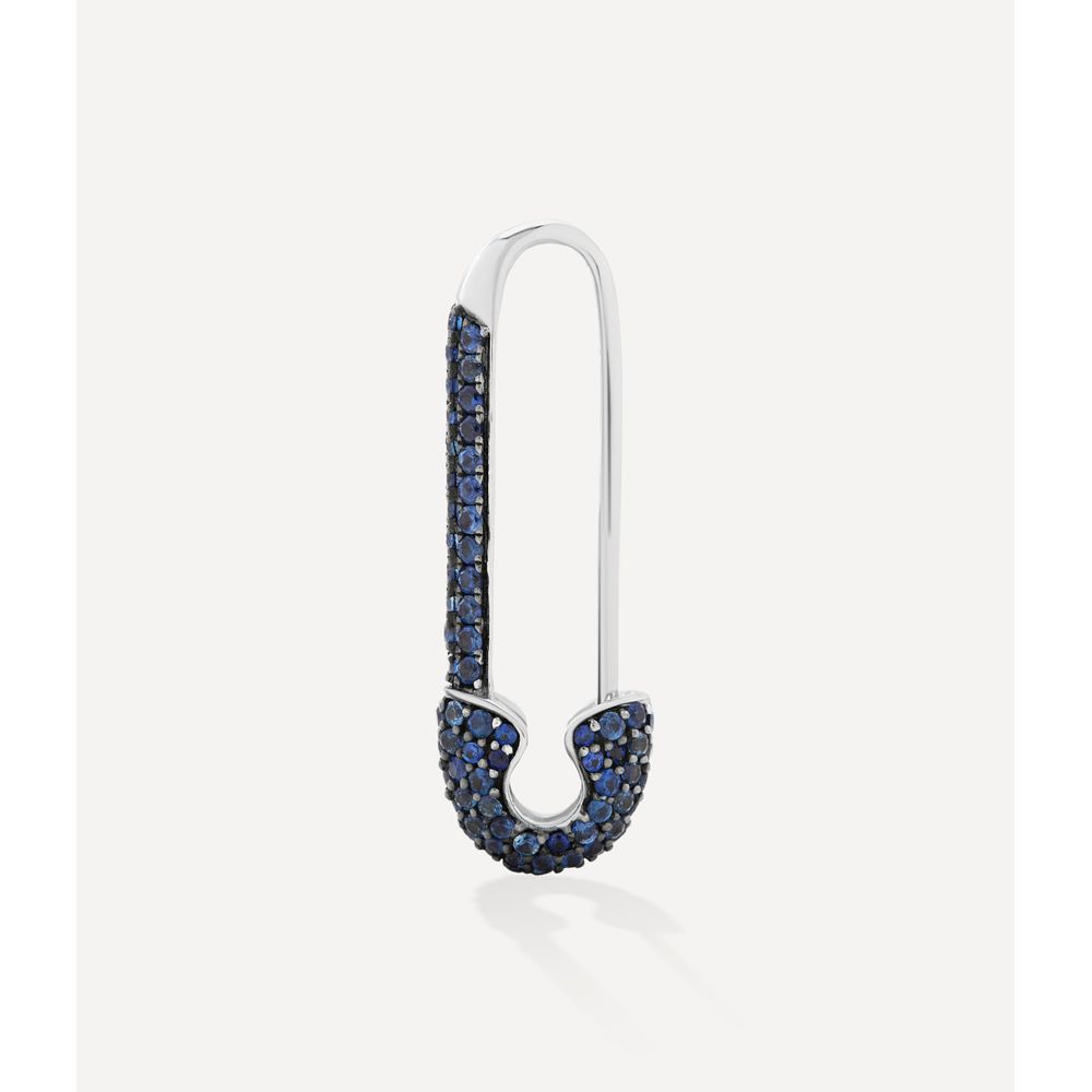Brinco único safety pin full em ouro branco 14kt com pavê de safiras em lapidação brilhante