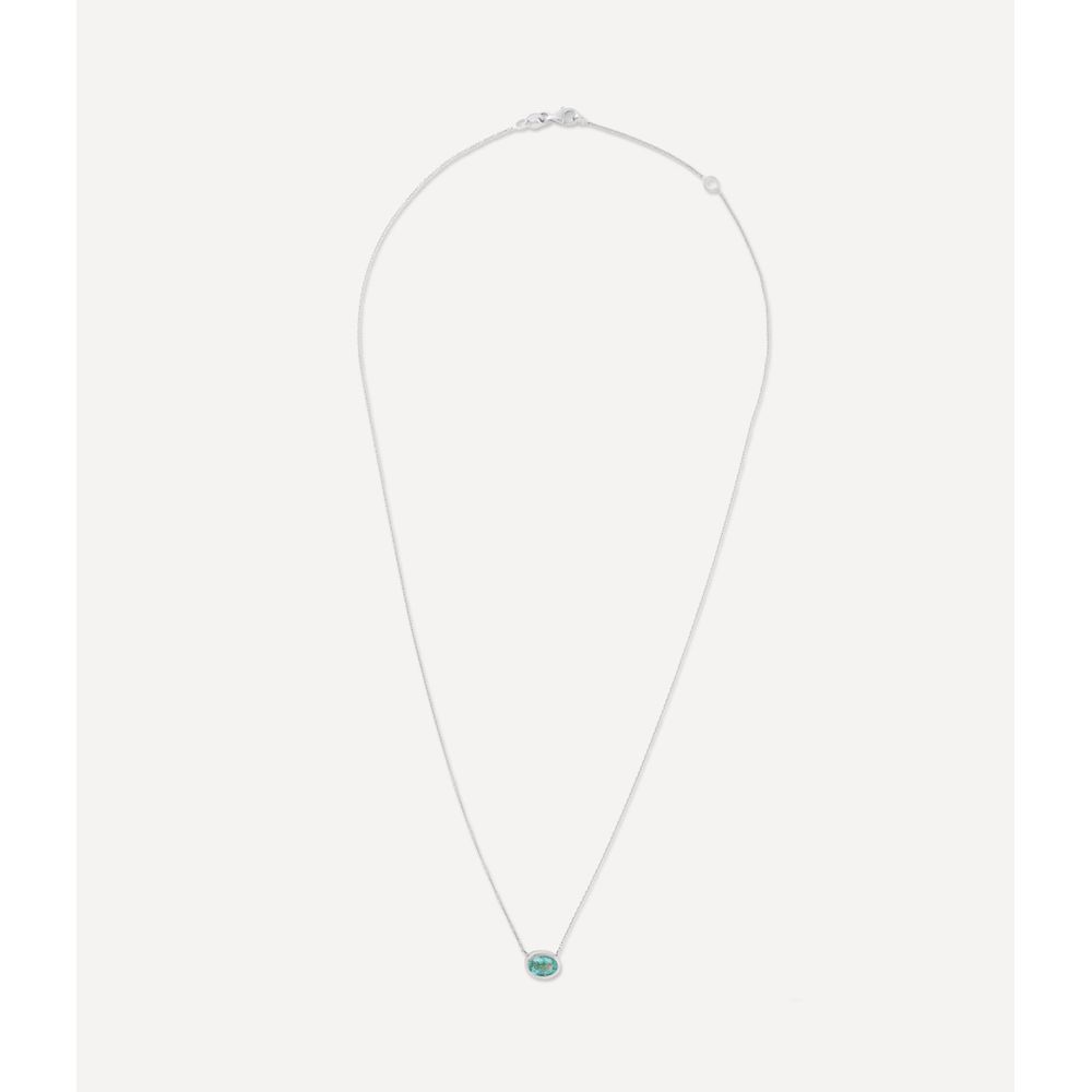 Colar pendente solitário de ouro branco com turmalina paraíba oval - CL100179 - TAMANHO 45