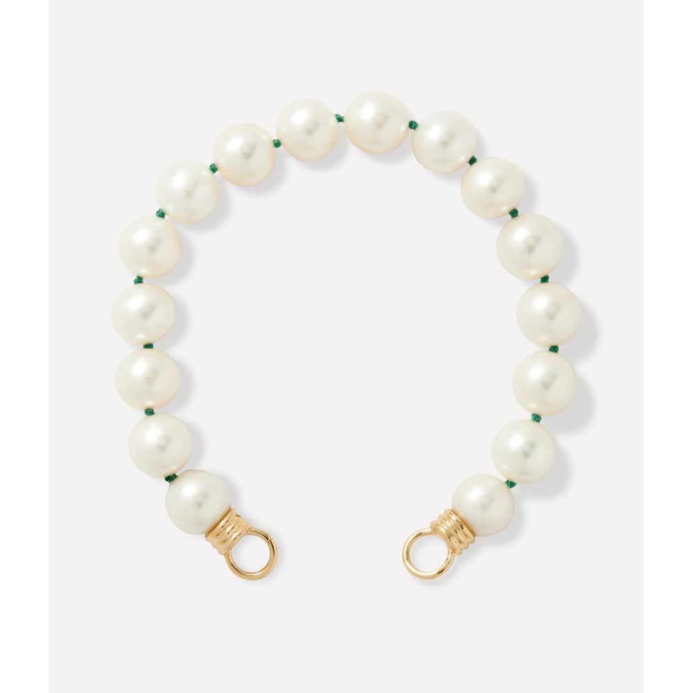 Pulseira de pérolas green strig com fecho loop em ouro amarelo 14kt. Possui fio em tom verde.